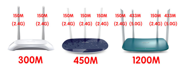 因此大多數(shù)300M的無(wú)線路由器都是2根2.4G的天線,而450M的就是3根2.4G的天線。而1200M的雙頻路由器,是兩根2.4G的天線(300Mps)+2根5.0G的天線(867Mbps)≈1200M。