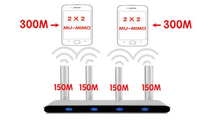理想的情況是:假如你的mu-mimo路由器有4根天線,而你的兩部手機(jī)都是2×2MU-MIMO的,這樣你的兩部手機(jī)都能各自分得路由器的兩根天線,以達(dá)到最高的傳輸效率。