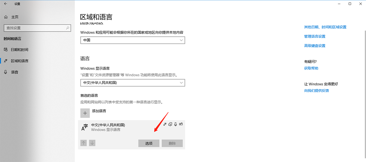 左下角【開始】圖標(biāo)----【設(shè)置】----【時(shí)間和語言】----【區(qū)域和語言】----右側(cè)語言項(xiàng)中找到 windows顯示語言,點(diǎn)擊選中----點(diǎn)“選項(xiàng)”按鈕----在新窗口中往下看 鍵盤 列表,看如果有 美式鍵盤,選中----刪除。